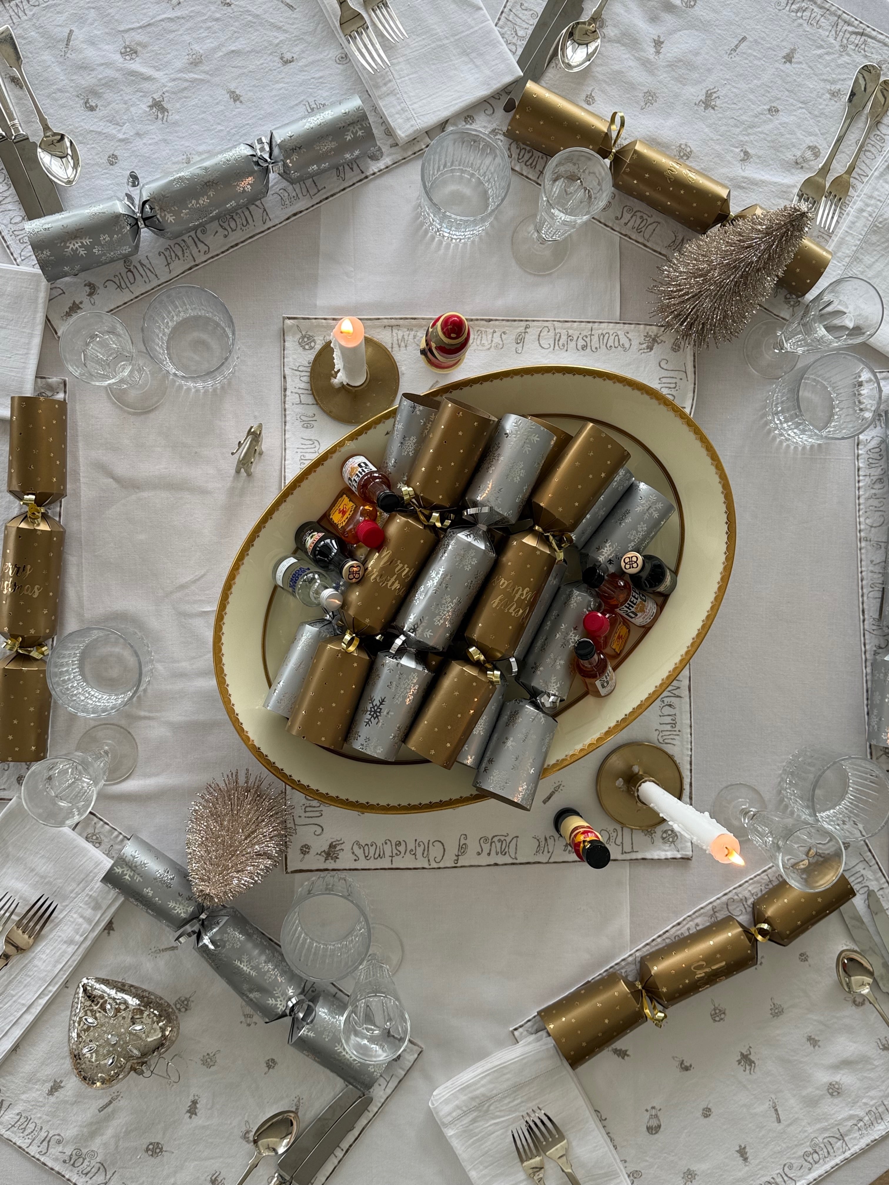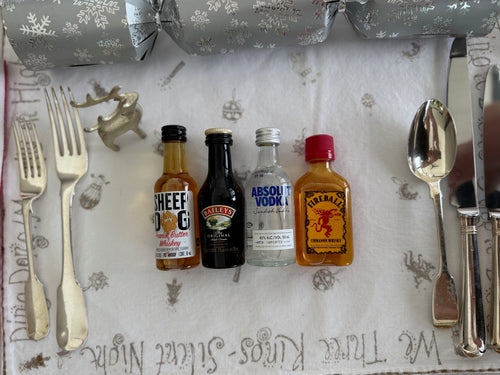 The crackers are a beautiful gold and silver. They come with a 50ml shot of Fireball, Baileys, Absolut or Sheep Dog, plus a crown and a laugh you’ll actually enjoy.